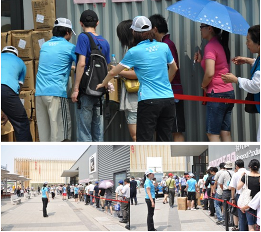 在世博局參觀者服務(wù)中心的支持下,自6月12日起,愛心凳在每周周六早上9:30準(zhǔn)時發(fā)放。游客們可于中國館禮品店(世博園區(qū)中國館九州清晏)、世博特許紀(jì)念品零售中心(世博園區(qū)歐洲區(qū)C10-808、百蓮涇廣場店)以及世博軸廣場15號核心棟排隊免費領(lǐng)取。交通銀行與上海新世傲推出的愛心凳傳遞活動得到了世博安保部的大力配合,發(fā)放現(xiàn)場次序井然、游客反響良好。藍色的凳子在世博園內(nèi)形成了一道亮麗的風(fēng)景線,傳遞了世博高贊企業(yè)對游客的人性關(guān)懷,為游客們提供便利的同時也倡導(dǎo)參觀者文明看博、文明游博。