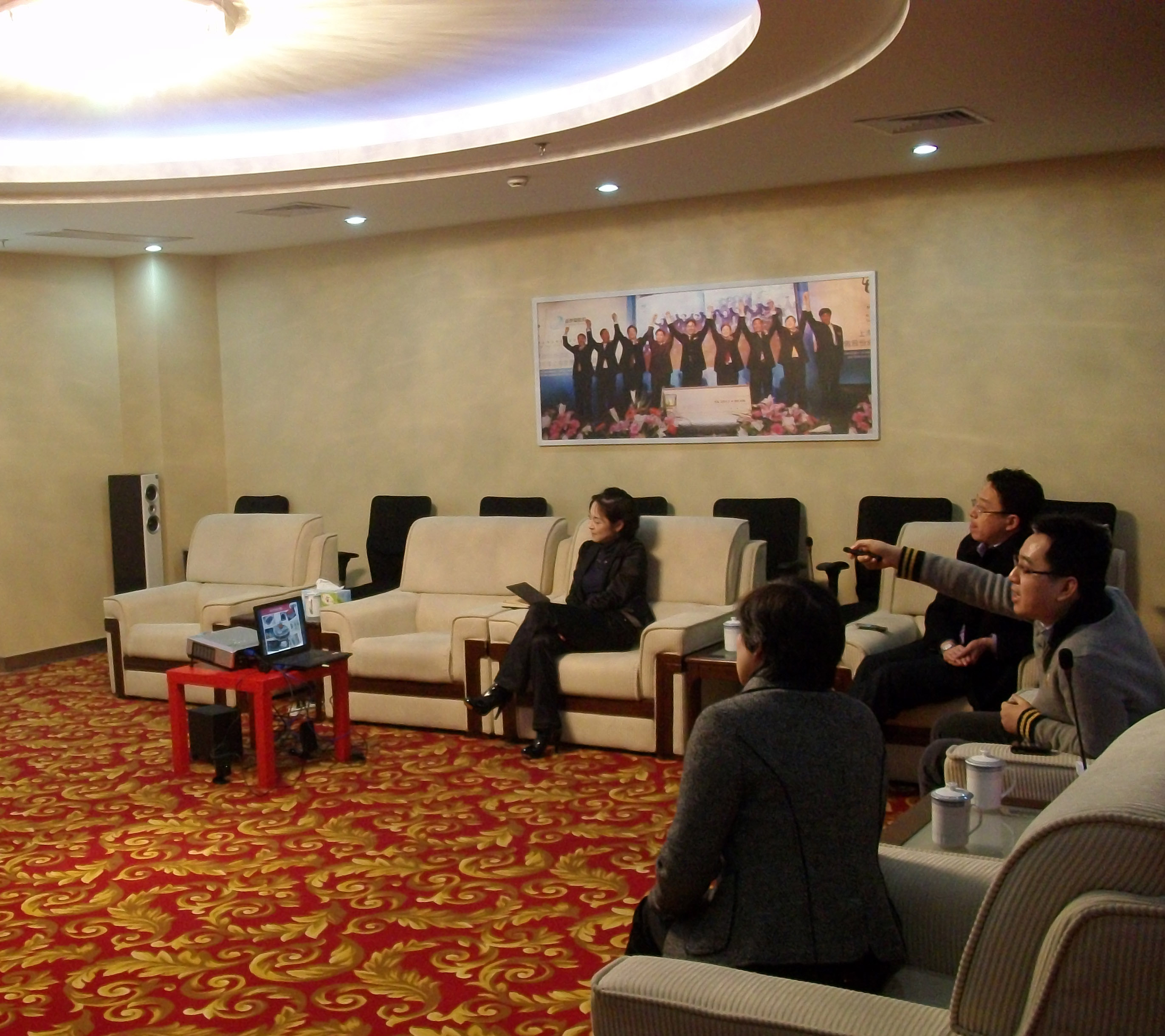 新世傲總裁朱政平向兩位領(lǐng)導(dǎo)匯報公司情況
