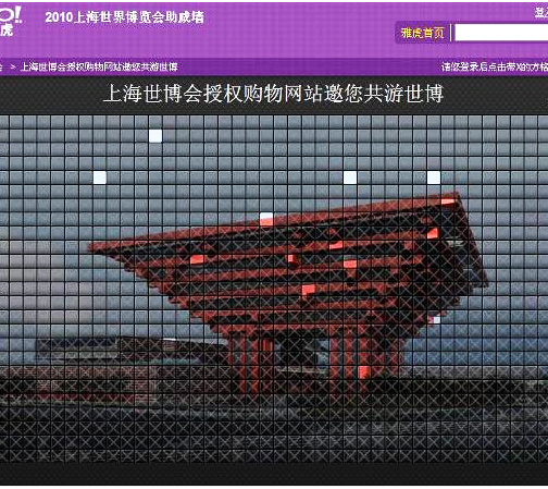 據(jù)了解,本次“世博助威墻”活動,以互動方式帶來了新的世博體驗。一張中國館的圖片被分割成等份的1000個小格子,用戶點擊任意方格,即翻開方格并可留言支持世博。當方格被翻開,光彩奪目的中國館將閃耀呈現(xiàn)。另外,參與“世博助威墻”活動還可以贏取驚喜大獎。獎品除了包括海寶LED小夜燈,世博海寶臺歷等世博會紀念商品外,參與的網(wǎng)民更有機會獲得世博門票,免費暢游世博園。中獎用戶登錄世博會特許產(chǎn)品授權購物平臺www.51hahua.com即可領取豐厚獎品。